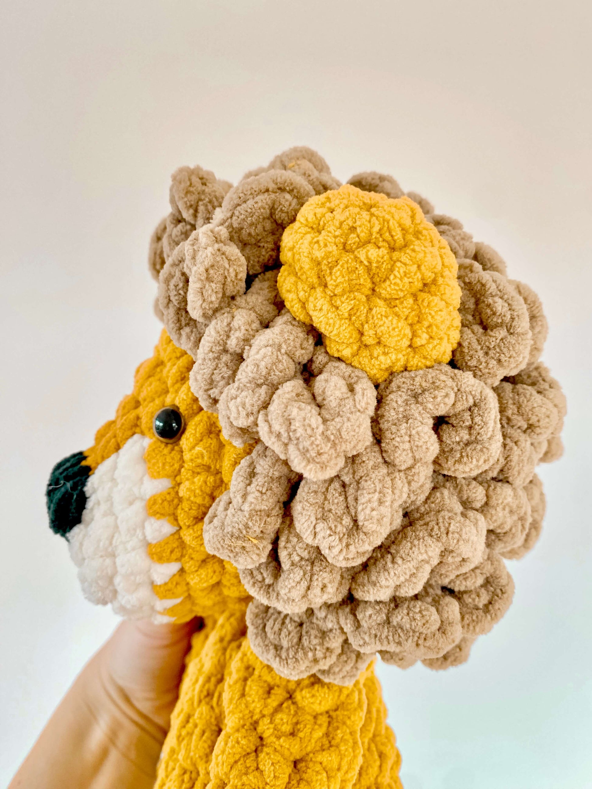 Dieses Muster wurde für Kinder ab 2 Jahren entworfen und erweckt einen majestätischen und knuddeligen Begleiter zum Leben. Dieser mit Liebe gefertigte große Löwe ist nicht nur ein entzückendes Stofftier, sondern auch ein tröstendes Kuscheltier.