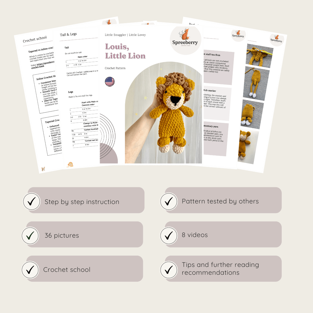 Empowering Comfort: This pattern creates a huggable lion companion, instilling bravery and offering steadfast support.
